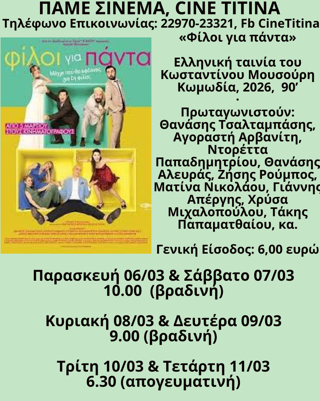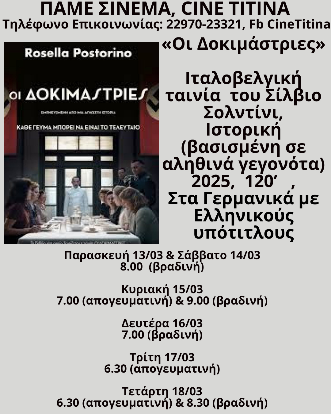 ΠΑΜΕ CINEMA, CINE TITINA Προβολές: 13-18/3/2026
