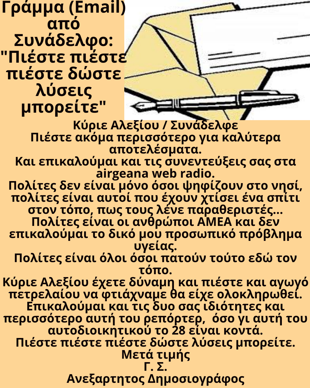 Γράμμα (Email) από Συνάδελφο: "Πιέστε πιέστε πιέστε δώστε λύσεις μπορείτε"