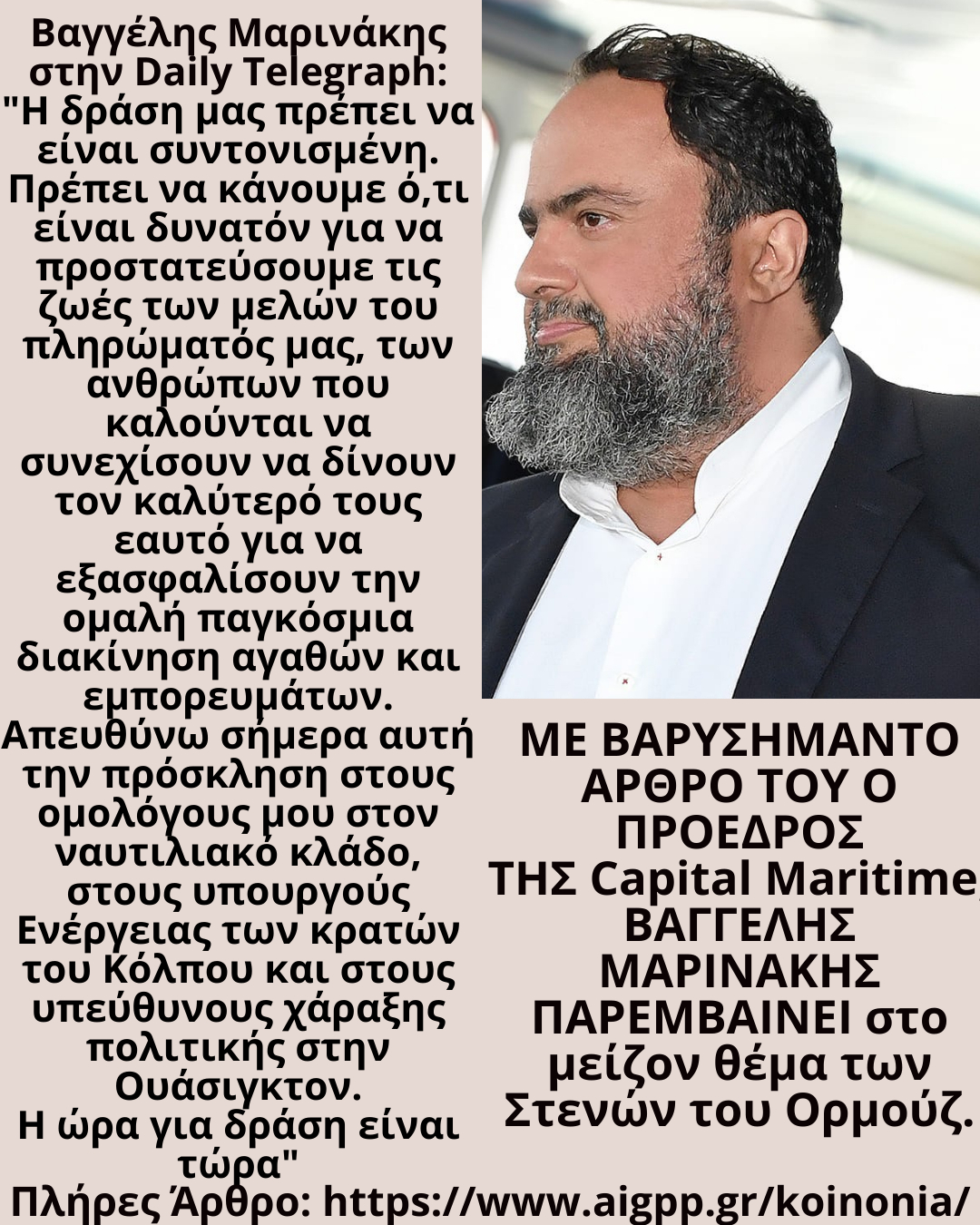 ΜΕ ΒΑΡΥΣΗΜΑΝΤΟ ΑΡΘΡΟ ΤΟΥ, στην Daily Telegraph, Ο ΒΑΓΓΕΛΗΣ ΜΑΡΙΝΑΚΗΣ ΠΑΡΕΜΒΑΙΝΕΙ ΣΤΟ ΘΕΜΑ ΤΩΝ ΣΤΕΝΩΝ ΤΟΥ ΟΡΜΟΥΖ.