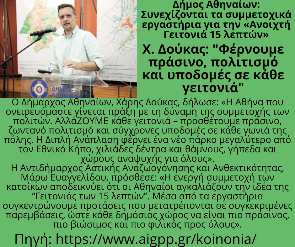 Για το λόγο αυτό, με την ιδιότητα των ενεργών πολιτών και έπειτα αυτή των παλιών