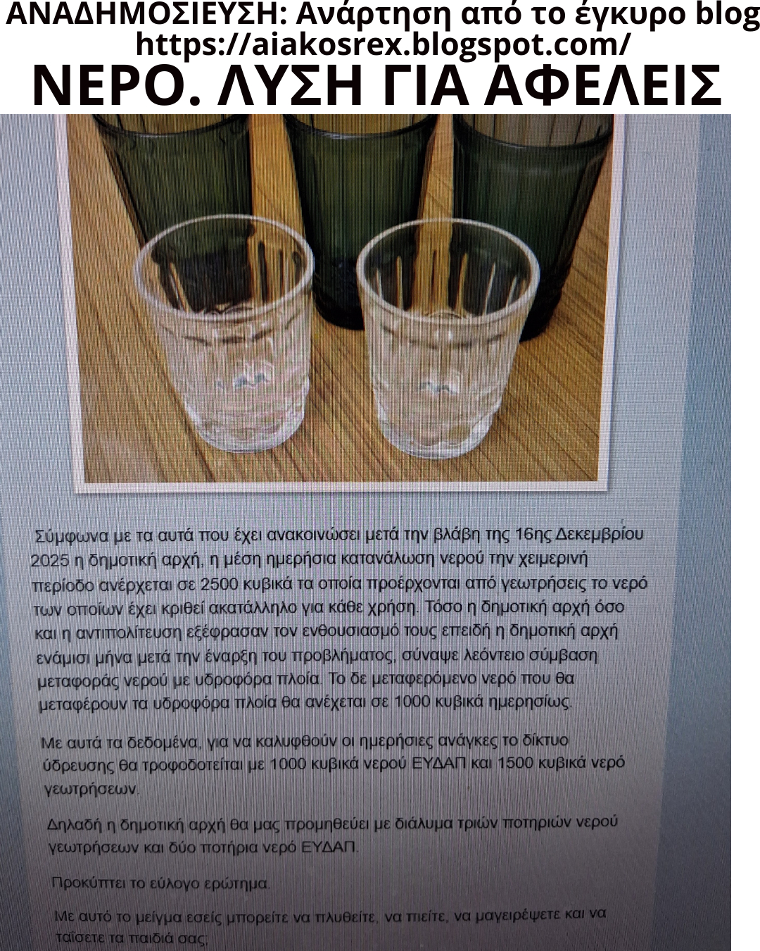 ΘΕΜΑ: Η Αίγινα, τρεις μήνες τώρα και πάλι χωρίς νερό!