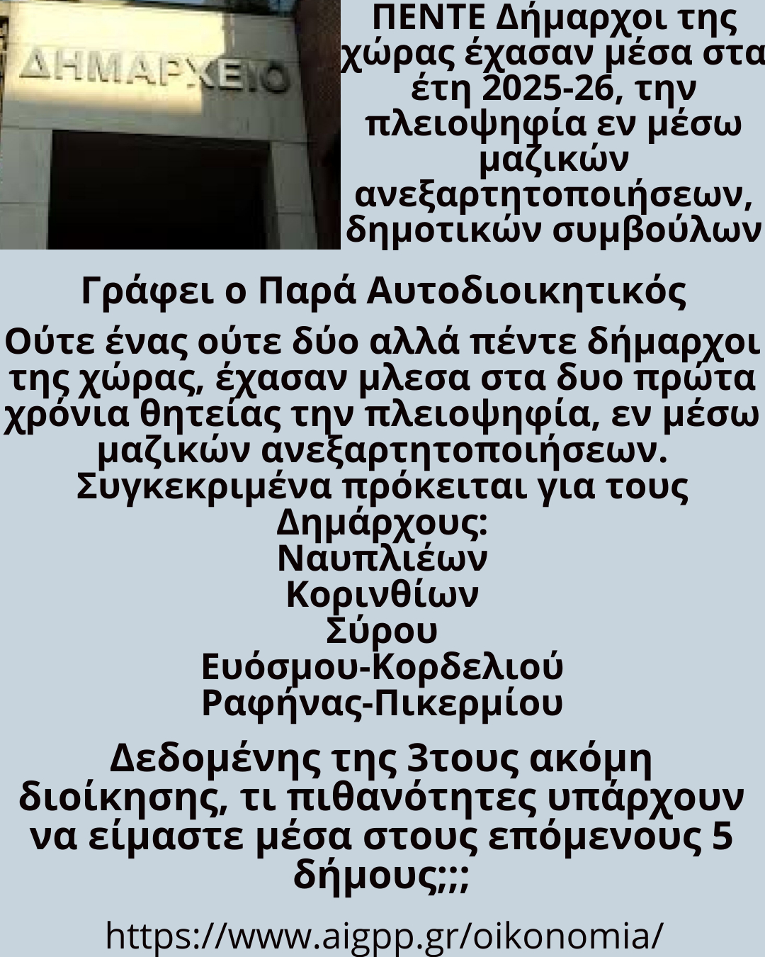 Αναδημοσίευση άρθρου: www.aigpp.gr Ενότητα Δημοτικά Νέα