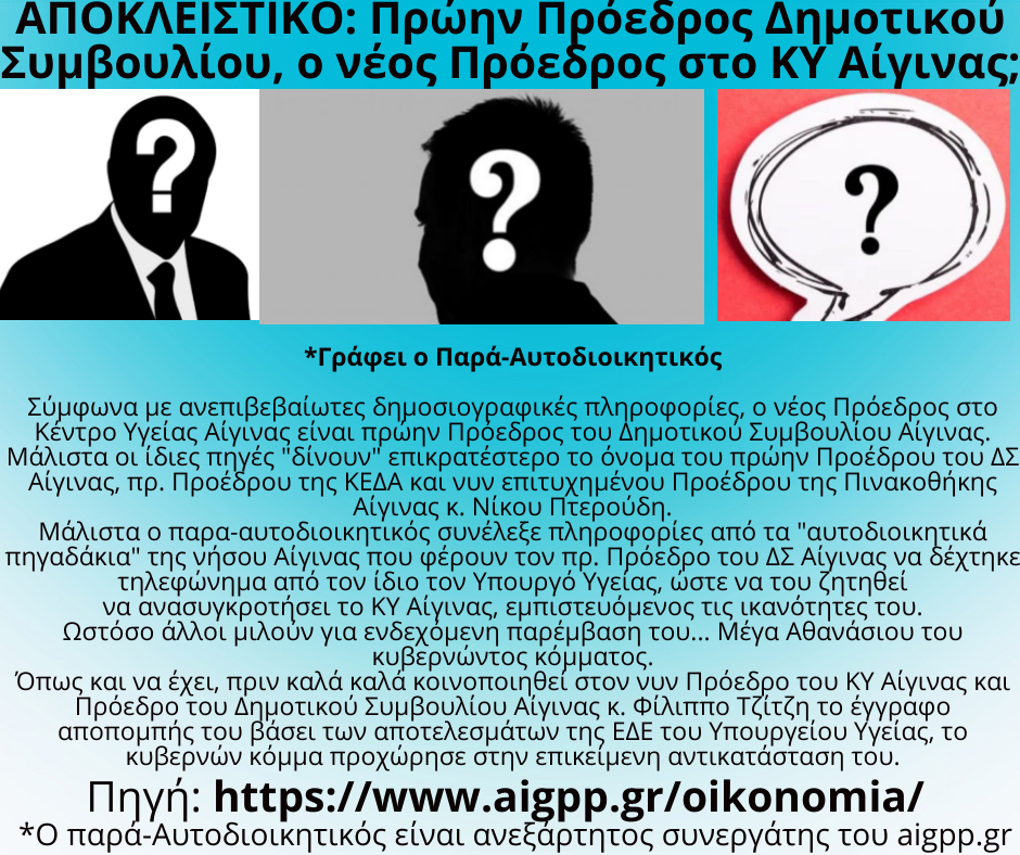 Στην απόφαση της 3ης Δεκεμβρίου του 2021 κάποιος ή κάποιοι φρόντισαν να εξαφανίσουν την απόφαση της Κοινότητας Αίγινας δεδομένης της από 3/2/2021 δήλωσης υποψηφιότητας μου για το Δήμο της Αίγινας (Τα συμπεράσματα πάλι δικά σας).Καλώ λοιπόν τον κ. Δήμαρχο Αίγινας (έστω και την ύστατη ώρα) να ΔΙΑΛΥΣΕΙ και να ΔΙΑΨΕΥΣΕΙ τις περί πολιτικής αγνωμοσύνης και αμετροέπειας εικασίες μου και να δηλώσει ξεκάθαρα πως από την Ομόφωνη Απόφαση της Κοινότητας Αίγινας (Από 31/3/2021 και με Πρόταση του Υπογράφοντος) ξεκίνησαν όλα.