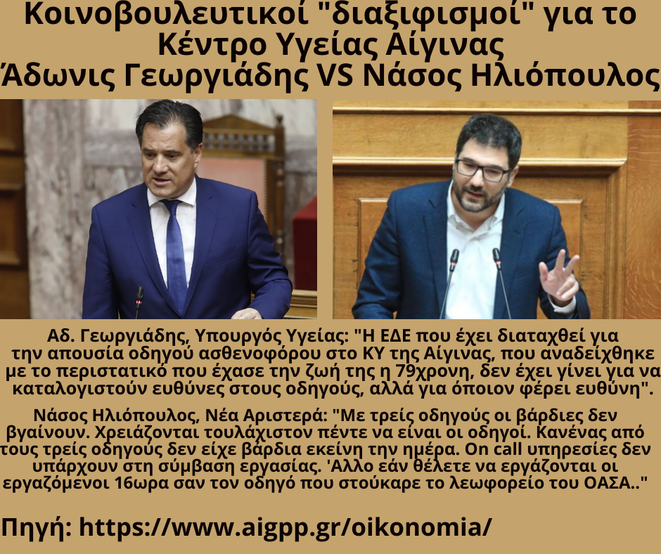 Μήπως είχαμε και αξιοποιήσαμε την ίδια πηγή πληροφόρησης και άντλησης στοιχείων; Λέω μήπως;Και κάτι τελευταίο που αφορά το πλωτό ασθενοφόρο: Δεν υπάρχει καμία απόφαση του Δημοτικού Συμβουλίου Αίγινας που να αποδέχεται την έλευση του. (Τυχαίο...δεν νομίζω).Κάτι το οποίο το γειτονικό Αγκίστρι είχε πράξει με απόφαση Δημοτικού Συμβουλίου... Και αυτό μετά από Εισήγηση του πρ. υποψηφίου Δημάρχου Αίγινας κ. Γιώργου Θεοδωράκη και αυτό για να μην χαθεί η ευκαιρία του Ελλιμενισμού καθώς κάποιοι στο δικό μας νησί ήθελαν να ελλιμενίζεται στα... Μέθανα (Τα συμπεράσματα δικά σας).