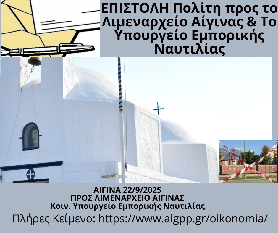 Αξιότιμε κύριε Λιμενάρχη Αίγινας, κ. Αργύρη Φραγκούλη
